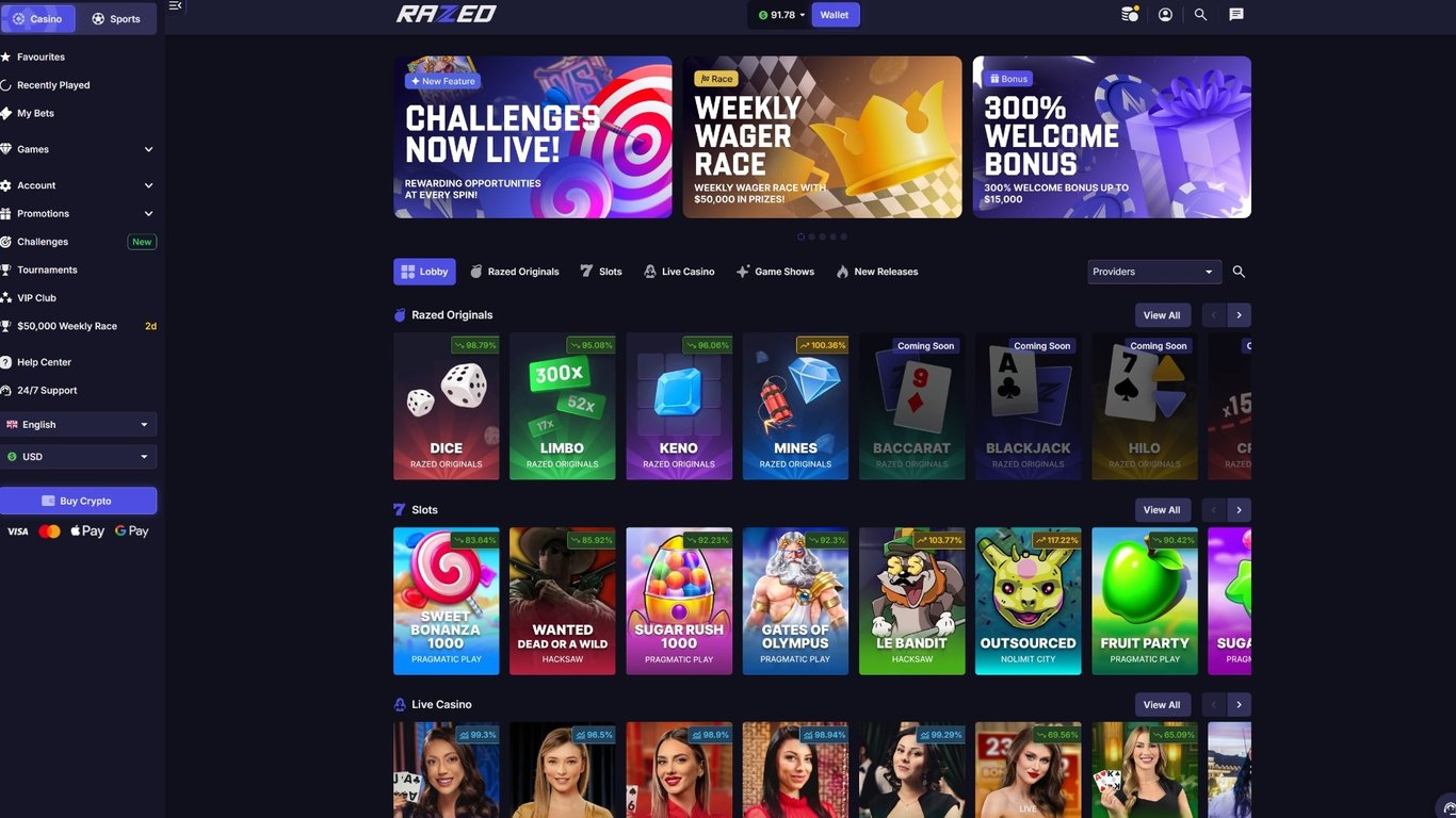Compared to these, Razed is newer but holds up well: it has more games than Stake or Cloudbet, and its sportsbook is robust (covering even horse racing, which Stake lacked until recently). Razed’s interface and features (like multi-view gaming, social login, on-site crypto purchase) are on par with the slick user experience that crypto casinos aim for.